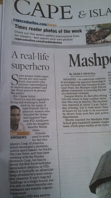 Cape Cod Times Columnist Sean Gonsalves featured my father, Jack Driscoll and his work as a chemist in his July 23, 2013 column dubbing him "A real-life superhero". Sean did such a marvelous job in his portrayal of my father so much so that you can even hear my father's enthusiastic Boston accent throughout the piece.